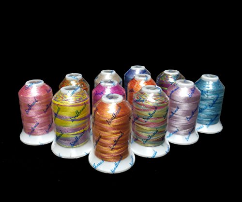 12 Multi Color Polyester Embroidery Thread 1000 Meters Each for Janome Brother Pfaff Babylock Singer Bernina Husqvaran and Most Home Embroidery Machines