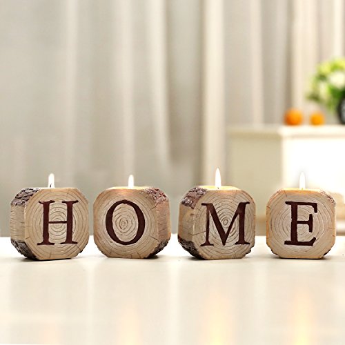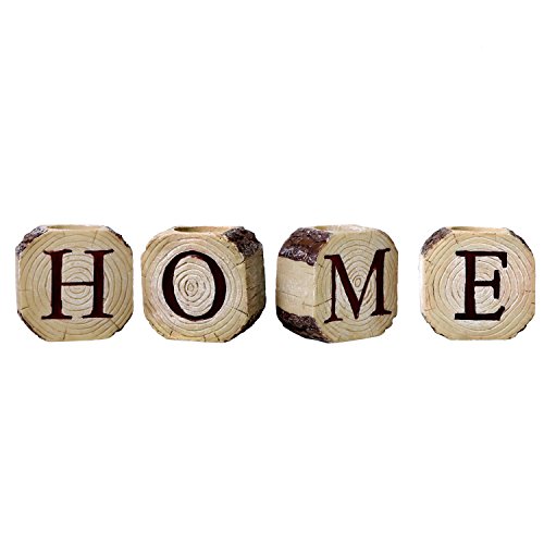 -. Binding : Kitchen -. Brand : MyGift -. Color : Beige -. Feature : Set of 4 resin tealight holders made to look like wood,each with a letter that spells HOME when set together. / 1.5-inch candle socket holds tealights candles. / Makes a great decor on a mantel or side table. / **Official MyGift® product.** Tealight candle not included. / Approximate Dimensions (each candleholder, in inches): 3.1 H × 3.1 W × 1.8 D. -. Label : MyGift -. Manufacturer : MyGift -. MPN : TB-CAN0020BEI -. NumberOfItems : 1 -. PackageQuantity : 1 -. PartNumber : TB-CAN0020BEI -. ProductGroup : Home -. ProductTypeName : HOME -. Publisher : MyGift -. Size : Small -. Studio : MyGift -. Title : Decorative Resin HOME Letter Tealight Candleholders, Beige, Set of 4