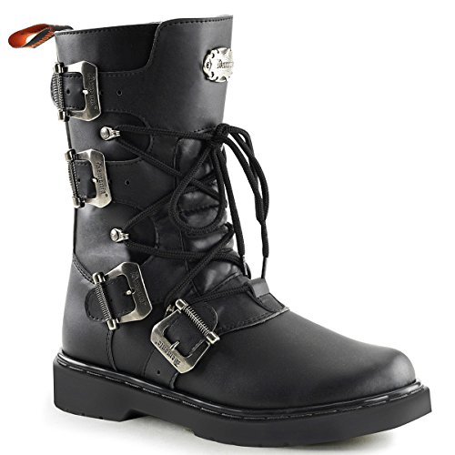 Mens Combat Boots Black Vegan Leather Boots Calf High Buckles 1 Inch MEN SIZING