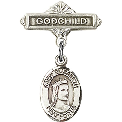 -. Title : Sterling Silver Baby Badge with St. Elizabeth of Hungary Charm and Godchild Badge Pin 1 X 5/8 inches
