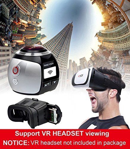 StillCool New Wireless 360 Degree Panoramic Camera 3D VR Action Sports Camera Wifi 16MP 4K HD 30fps Waterproof 230° Large Lens Mini DV Player (White)