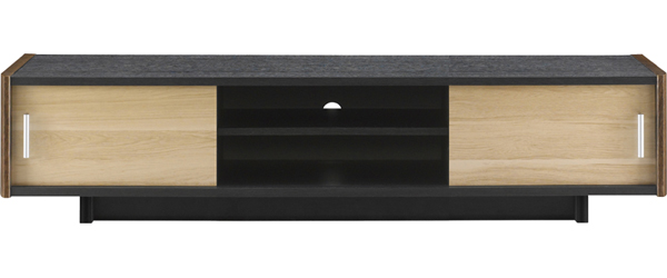 ●仕様:組み立て式/スライドドア大容量収納/高さ2段階設置(高318/438mm)可能/扉リバーシブル(ウォルナット木目/ナチュラル木目)/3段可動棚はエッジのカラーもリバーシブル/モダンなシルバーハンドル