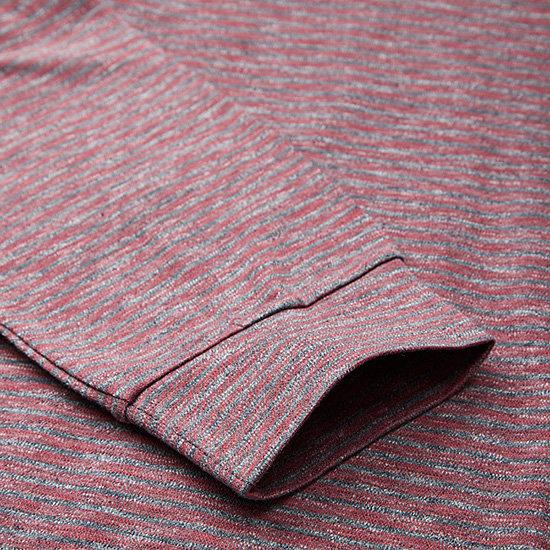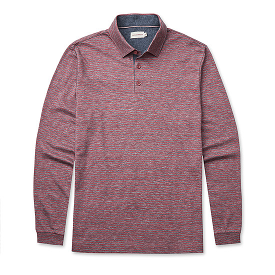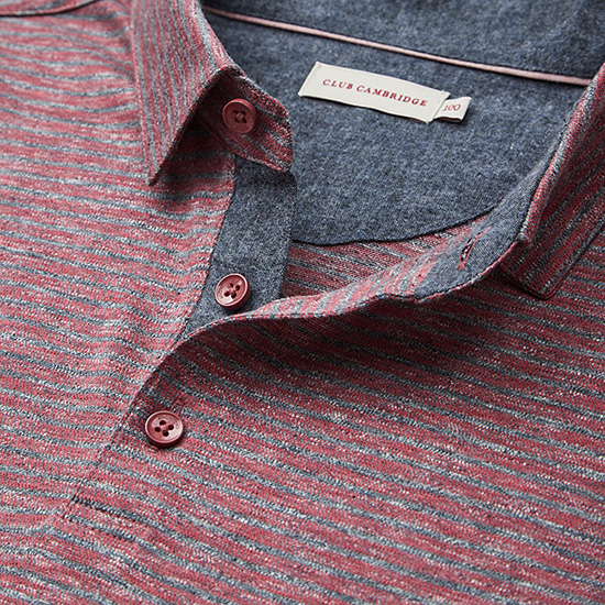 - 멜란지 스트라이프 패턴을 규칙적으로 적용한 남성 카라 티셔츠.