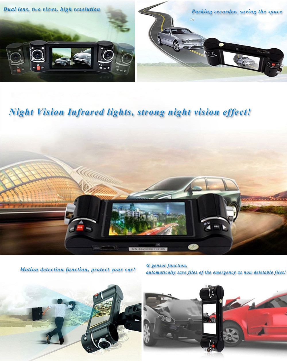 Type: Dual Lens Dashboard Camera,HD Car DVR Recorder