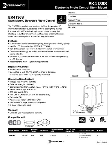 Intermatic EK4136S Select Grade Fixed Mount Electronic Photocontrol with Stem and Side Lens