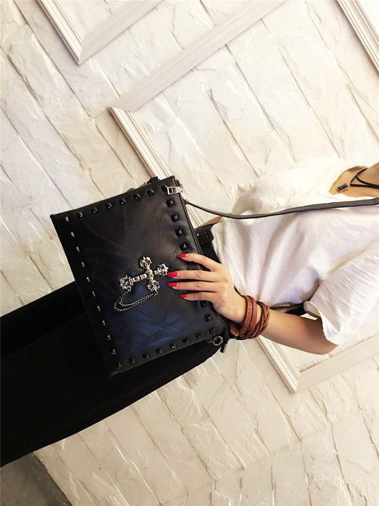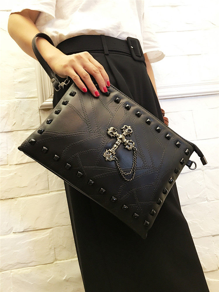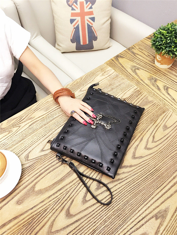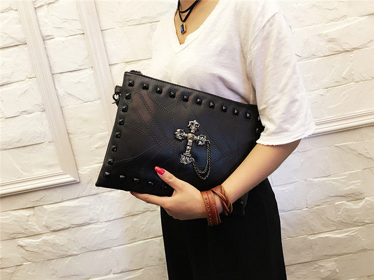 个性定制十字架手拿包信封包中性潮大容量软皮手夹包柳丁两用包
