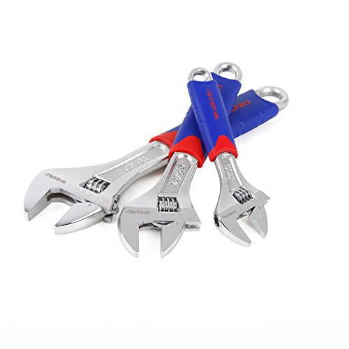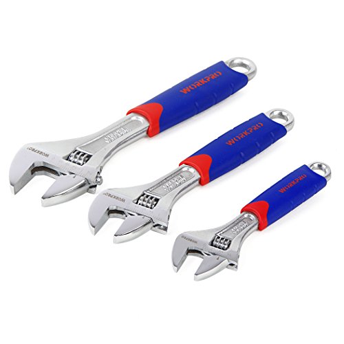 WORKPRO 3-piece Adjustable Wrench Set CR-V with Rubberized Anti-Slip Grips 6-inch, 8-inch, 10-inch