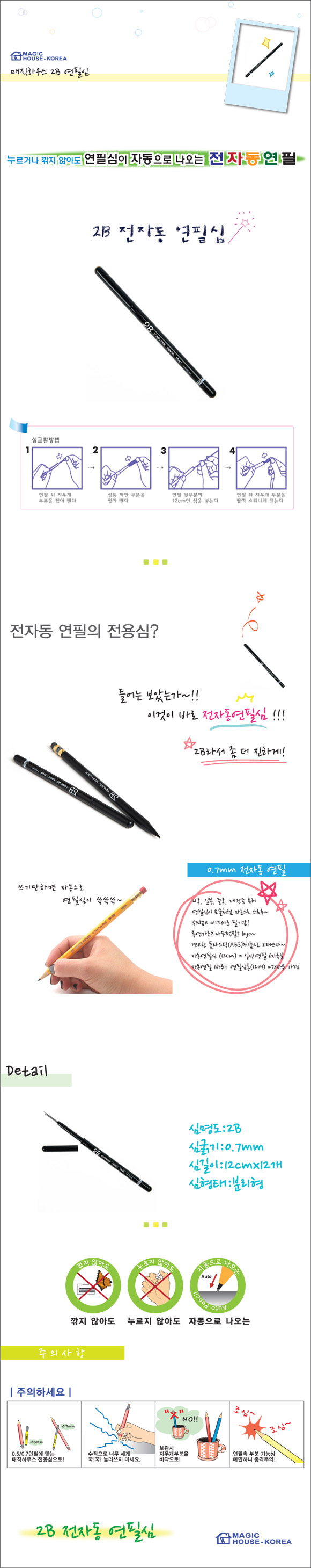 2B 전자동 연필로 깔끔하게 필기하세요.