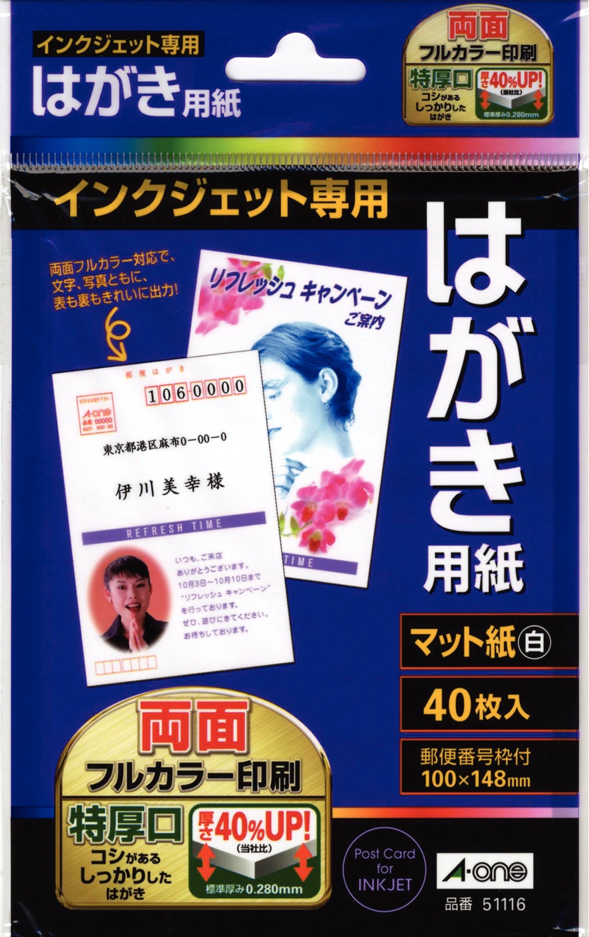 -One (A-one) postcard paper inkjet printer special paper mat KamitokuAtsu opening type 40 sheets 51116 (japan import)