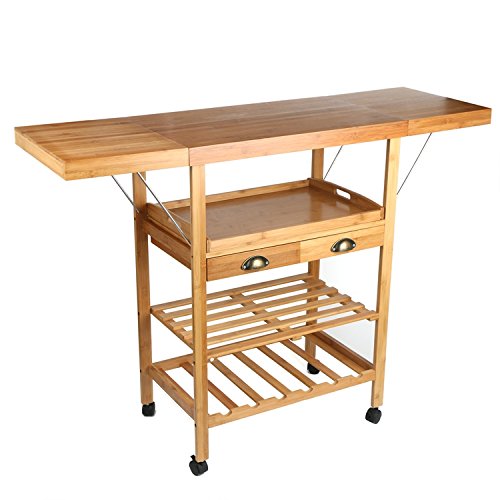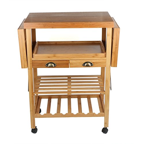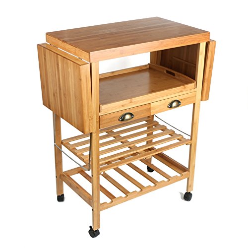 JA Marketing 28 Bamboo Expandable Wood Kitchen Cart, Bamboo Wood