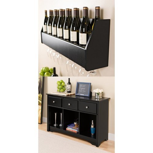 Prepac Floating Wine Rack and Living Room Console - Black