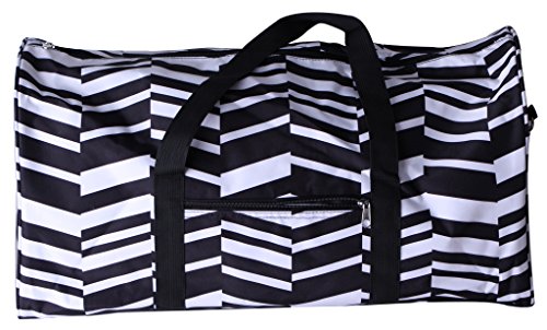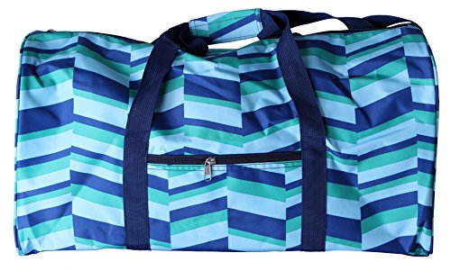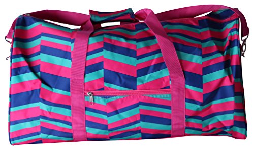 Product Description Printed Polyester*** Duffle Bag with Zipper Closure*** Outside and inside zipper pockets*** 21" L x 10" W x 11"H*** Reinforced bottom with rubber feet.*** Adjustable/removable shoulder strap*** 0