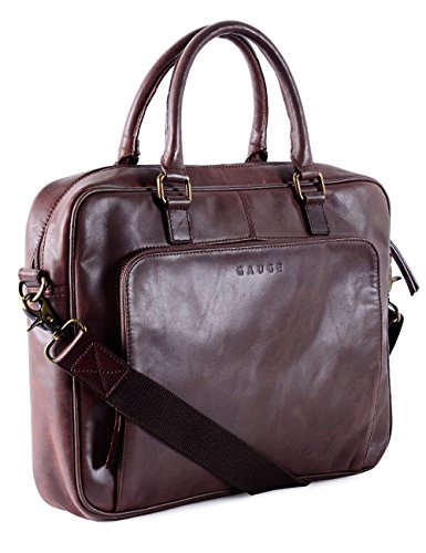 Studio : Gauge Publisher : Gauge Binding : Personal Computers Product Description Discretion is central to Gauge's design philosophy. Its expert craftsmanship speaks for itself. It'll hold your laptop, notebook and documents, and has a detachable strap for hands-free ease. The design echoes simplicity yet sophistication of ever-in-vogue vintage leather and black nickel trims. ? Care: Clean with a leather conditioner ? Disclaimer: Any visible imperfections are inherent to the leather products and are a signature property of the same" ?Material: 100% genuine leather 0