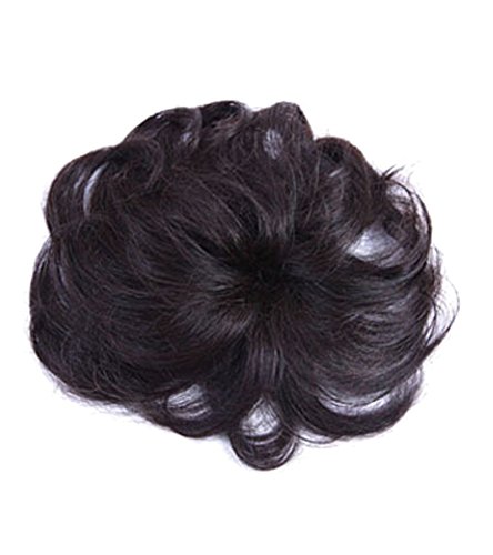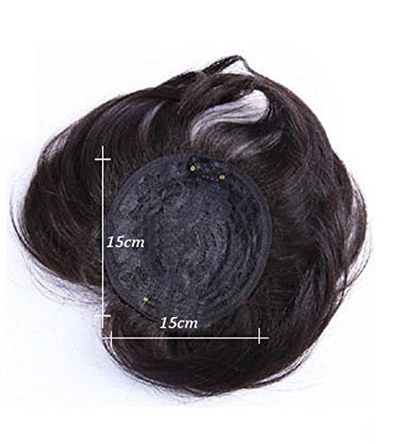 Remeehi 6" Curly Human Hair Seamless Fluffy Hair Replacement Top Piece Hair Topper Mom Hair 2# ...