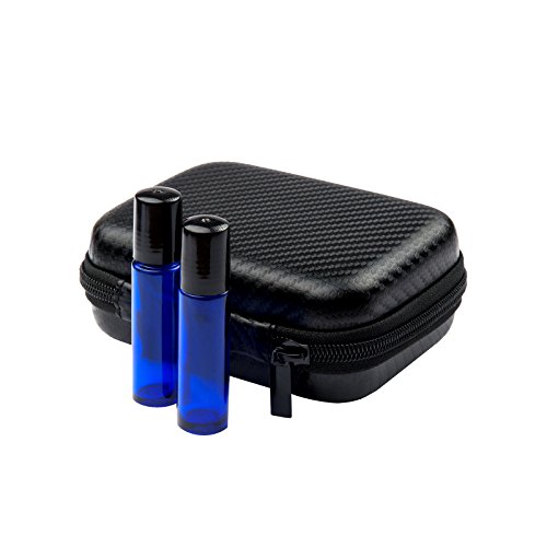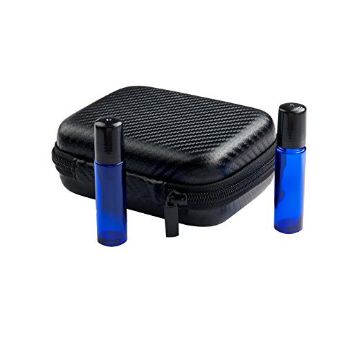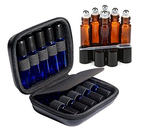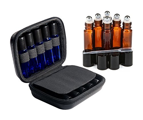 Roller Bottle Essential Oil Carrying Case Bundle With Accessories - Holds TEN 5ml & 10ml Roller Bottles- Comes W/ 6 Amber Glass Stainless Steel Roller Bottles &...