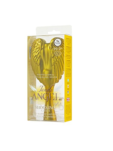-. Binding : Health and Beauty -. Brand : Tangle Angel -. Color : Gorgeous Gold -. EAN : 5060236421050 -. Feature : A blessing for all hair types - The Tangle Angel is a professional and innovative detangling brush as functional as it is attractive. Featuring a classically-styled wing motif that is sure to add a welcome flair to your vanity, the Tangle Angel is perfect for gently detangling both wet and dry hair, makes a great blow drying brush, and is suitable for all hair types / Shaped for ease and comfort - The Tangle Angel's wide ergonomic shape allows for quick and easy brushing, and the contoured base retains full bristle height even after your hair has been detangled. For everyday use, hold the Tangle Angel by the base. For greater control when styling, hold the wings / Heat resistant antibacterial bristles - To ensure that your brush is ultra-hygienic and completely safe to use, we specifically introduced antibacterial additives to the Tangle Angel's plastic bristles. Our bristles are heat resistant and retain their shape even when introduced to the high temperatures generated by hairdryers / Anti static and water resistant - Our bristles also have anti-static properties that prevent flyaway hair, leaving each strand silky and smooth. This is brush is also ideal for using in the shower and can be used on hair extensions or children's hair as well. -. IsAdultProduct : 0 -. Label : Tangle Angel -. Manufacturer : Tangle Angel -. Model : 21050 -. MPN : 21050 -. PackageQuantity : 1 -. PartNumber : 21050 -. ProductGroup : Beauty -. ProductTypeName : BEAUTY -. Publisher : Tangle Angel -. Studio : Tangle Angel -. Title : Tangle Angel Ergonomic Shape Hair Brush With Heat Resistant Antibacterial Bristles, Gorgeous Gold