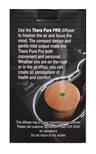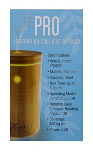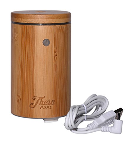 TheraPure Pro Bamboo Essential Oil Cool Mist Car Diffuser with 300 sq ft Coverage - 6 Hour Run Time with Rotating or Constant Color Wheel LED Lighting...