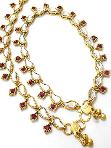 -. Feature : Indian Style Kundan Anklet / Payal / AZINPY006-AGP / Kundan Anklet - Payal / SPECIAL GIFT FOR WIFE / MOM / FRIEND / 2 piece