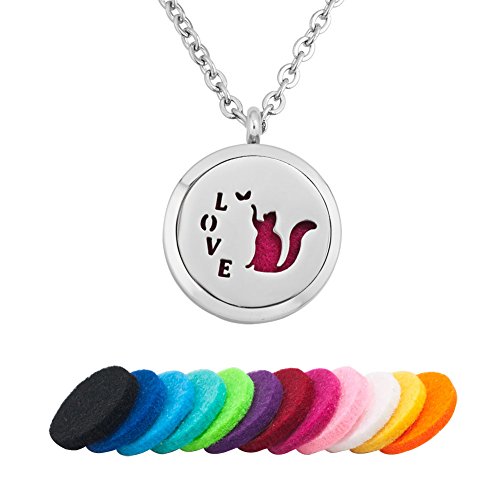 Third Time Charm Love Cat Necklaces Aromatherapy Essential Oil Diffuser Necklace Locket, 12 Refill Pads