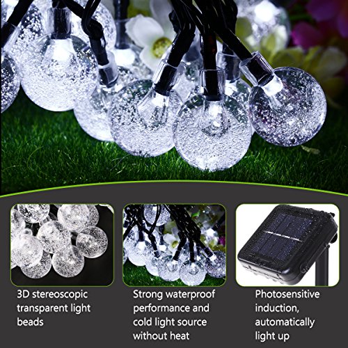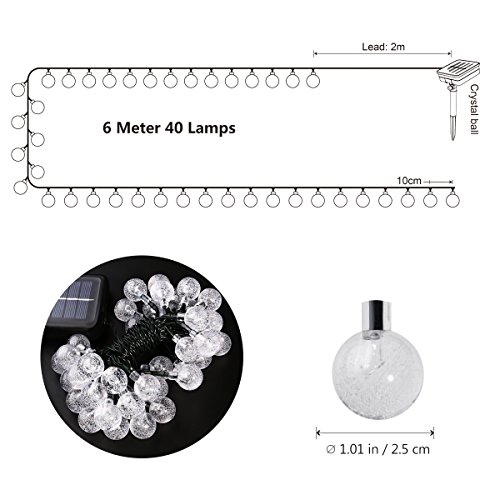 Solar String Lights, YUNLIGHTS 19.7foot 40 LED Waterproof Crystal Ball Lights with 8 Modes, Solar Powered Outdoor Lights for Home Patio Lawn Path or Party Decorations (White)