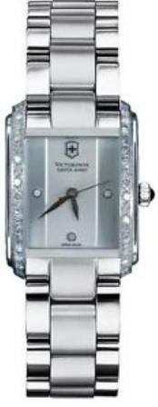 Victorinox Swiss Army Vivante Stainless Steel & Diamond Womens Swiss Watch Model # 241488.This Swiss Army Vivante timepiece features a brushed & polished stainless steel case and bracelet, Silver dial with textured center set with silver tone hand indicators, Second hand, silver tone dot hour markers, 34 Dazzling diamonds set on the bezel, Scratch resistant sapphire crystal, Fluted crown set with onyx cabochon, Solid case back, Swiss Quartz Movement, Water resistant to 30 meters/100 feet. Two Year Limited Warranty.