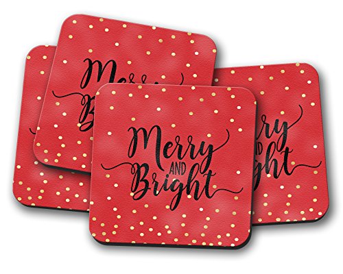 - Merry and Bright Red Coaster with Gold Confetti