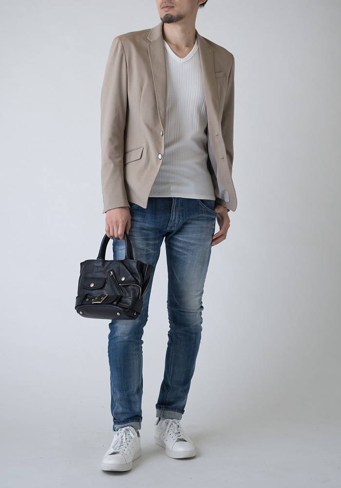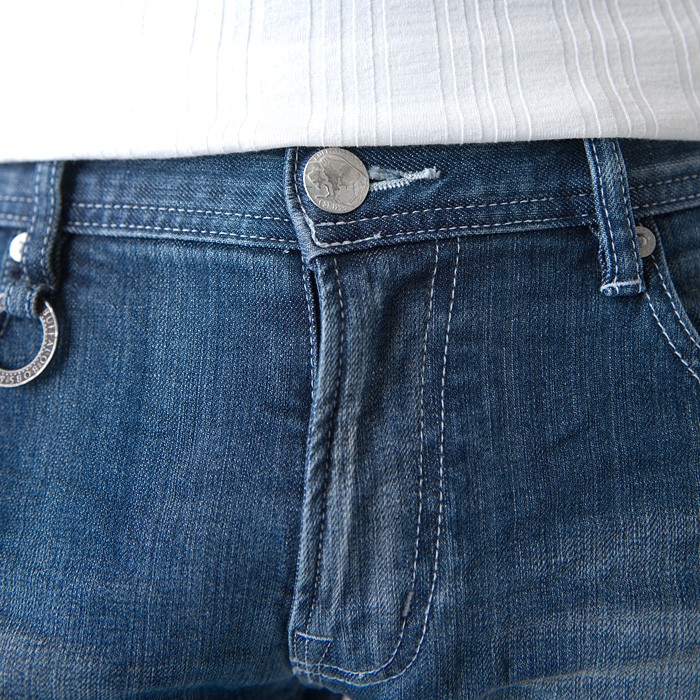淡をつけました。 春夏らしい爽やかさを表現するため程よくウォッシュし、濃い部分とブラスト加工のかかった部