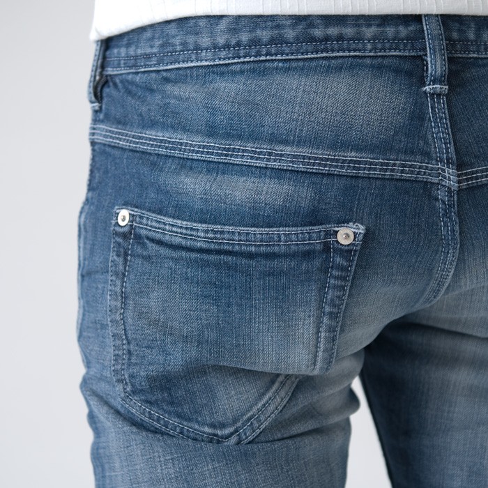幾重にも施した加工がポイントのストレッチデニムパンツです。