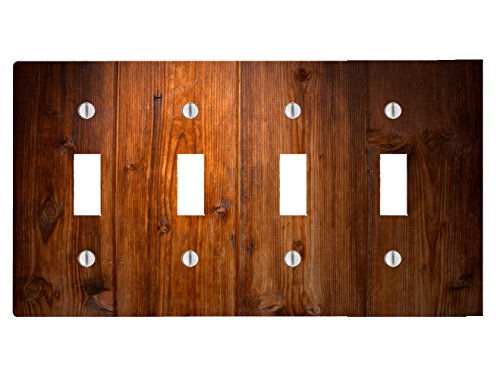 (Moonlight Printing)/Kids' Furniture Room Decor/Room Decor/DIRECT FROM USA/Wood Rustic Wooden Background 4 Toggle Electrical Switch Wall Plate (8.38 x 4.69in)
