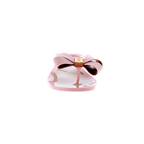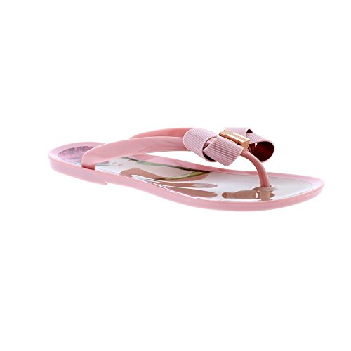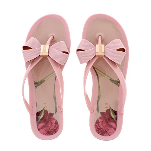 Product DescriptionA pretty pair of Ted Baker slip on sandals with a smooth toe post. Featuring an oversized statement bow with rose gold accents and a striking floral footbed.0