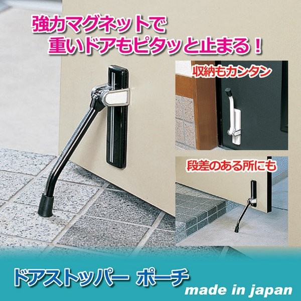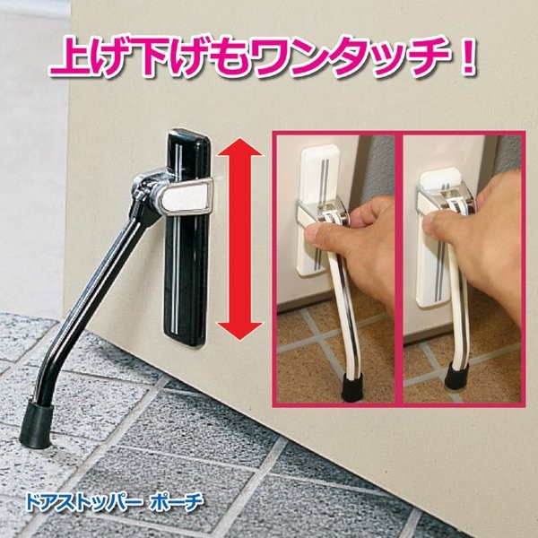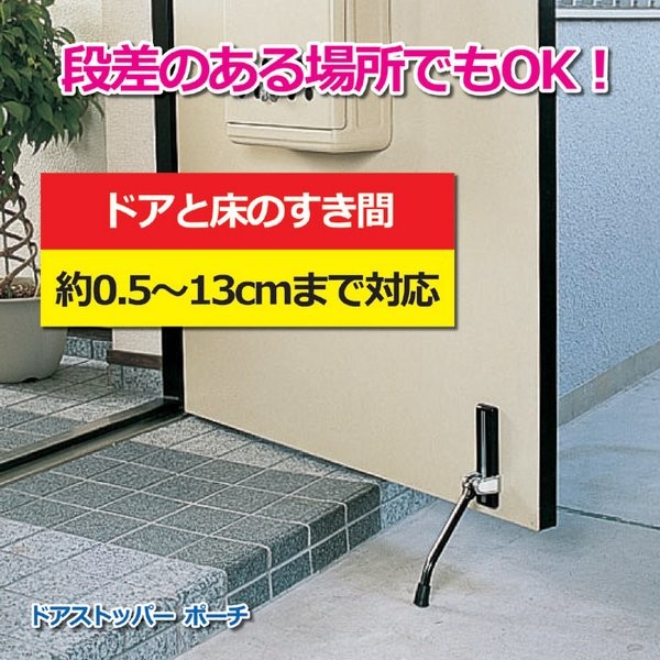 ちょっとドアを開けたままにしたい時に便利なドアストッパー。本製品は、シンプルなデザインで使い勝手が良いロングセラー製品です。鉄製のドアなら、そのまま取り付けができ、その他の素材のドアでも、付属パーツを使えば使用可能です。高さ調節ができるので、段差のある場所でも使用できます。