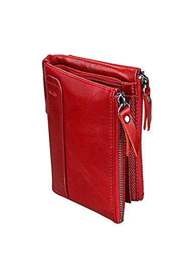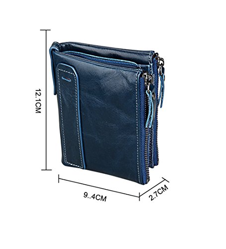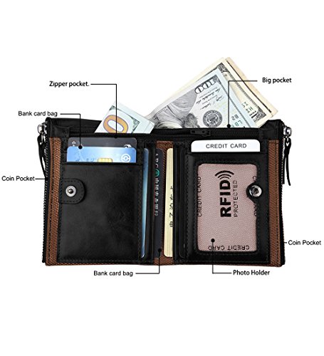 -. Title : AlALEI Mens Leather Wallet, Double Zipper Bifold Short Pocket with RFID Blocking