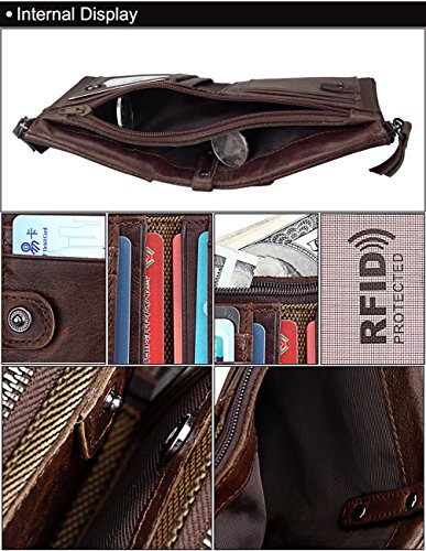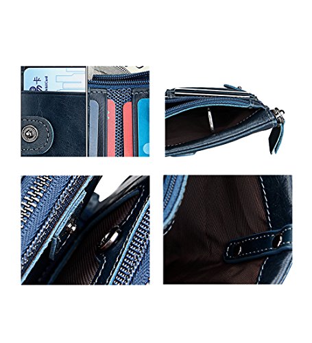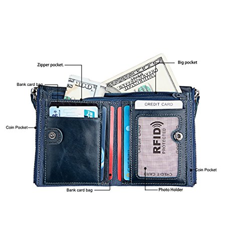 -. Feature : 100% leather wallet / DIMENSION: - INCH 4.8" x 3.7" x 1.3", this is a small wallet fit for most front pockets, easy to carry. / RFID BLOCKING DESIGN: - The RFID protection card holder can perfectly block unwanted RFID scanners, to protect your personal information, like ID Card, Credit Card, it is really necessary when walking out. / STRUCTURE: - 1 big main pocket for cash, 6 card slots;3 zippered Compartments to hold numerous credit cards, coins and bills,1 photo holder,3 back pocket, a convenient RFID blocking Wallet. / CRAZY HORSE LEATHER WALLET : - This RFID Blocking Wallet is made from Crazy Horse Leather with Inner material of polyester. It has a soft, textured surface and possesses the same flexibility as leather which is old fashion and vintage.