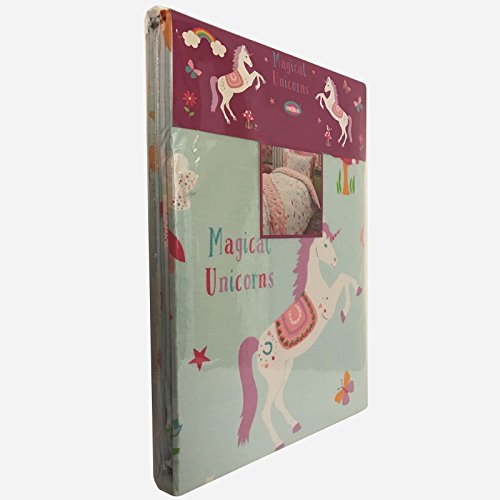 Your little princess will love this Magical Unicorn junior duvet cover set! The design features pretty unicorns and fairies on a pale blue background patterned with rainbows, toadstools and flowers, with a repeated rainbow design on a pink background on the reverse. This bedding set is made from a polycotton blend and is suitable for machine washing and tumble drying on a low setting. 0 |