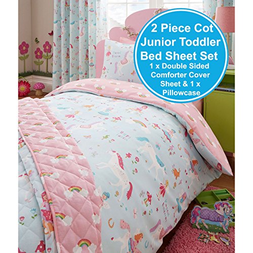 - A pretty unicorn and fairy themed bedding set