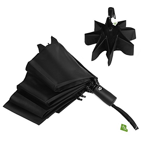 REVERSED & SAFE LOCK DESIGN- Underside of the canopy faces outwards which hides the wet surface above and prevents water from flowing downwards.Less dripping water in your car or backpack.Safe lock shaft saves efforts while closing the umbrella, Esp. designed for secure use.