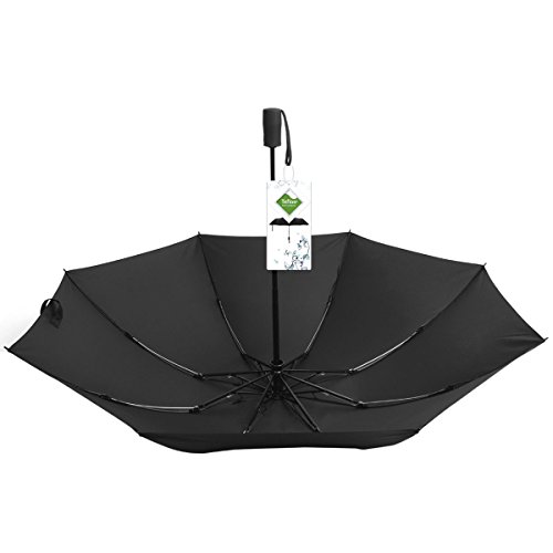 Automatic Compact Travel Umbrella with Reverse and Safe Lock Design, HQdeal Teflon 210T Auto Open Close Folding Strong Windproof Umbrella Black