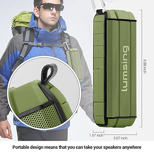 Studio : Lumsing Publisher : Lumsing Binding : Electronics Product Description Audio Format: MP3, WMA, AAC, M4A, OGG, APR, FLAC etc. Bluetooth version: V4.0 DER A2DP Stereo Audio Working distance: 50 feet (without barrier) Speaker: 40mm dedicated HiFi speaker unit Output Power: 4A 5W x 2 SNR ratio: ?80dB Power Input: DC 5V/1A Battery Capacity: 2000mAh rechargeable Lithium Battery Play time: 12 hours with full battery Size: 6.98 x 1.57 x 3.07 inches Weight: 10.6oz Material: ABS engineering plastic TPU plastic Warranty: 12-month manufacturer's warranty.