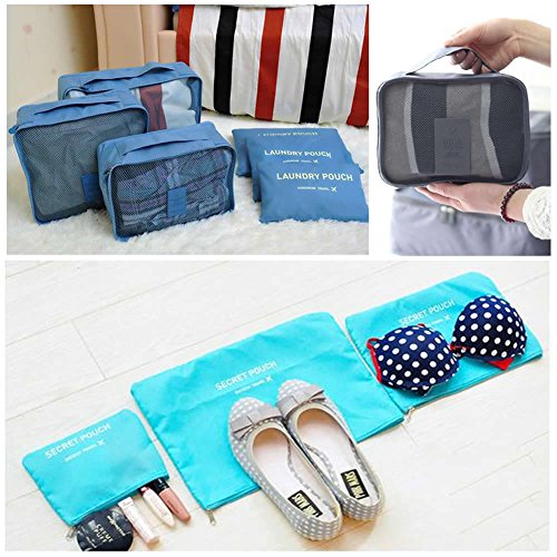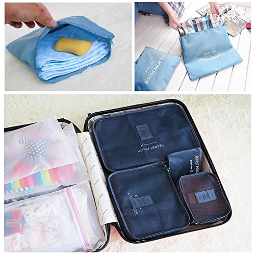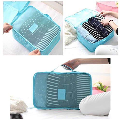 -. Brand : Wrisky -. Color : Blue -. Department : unisex-adult (lage only) -. Feature : Ideal for storing clothes, bra, socks etc,Keep your clothes and accessories tidy and organized / Great for traveling and organizing your wardrobe and baggage / 3pcs bags without handle and 3pcs bags with handle / 6 bags in different sizes, mesh on one side and solid on the other / Material: Oxford fabric -. ProductGroup : Apparel -. ProductTypeName : LAGE -. Size : M -. Title : Wrisky 6 Pcs Waterproof Clothes Storage Bags Packing Cube Travel Lage Organizer