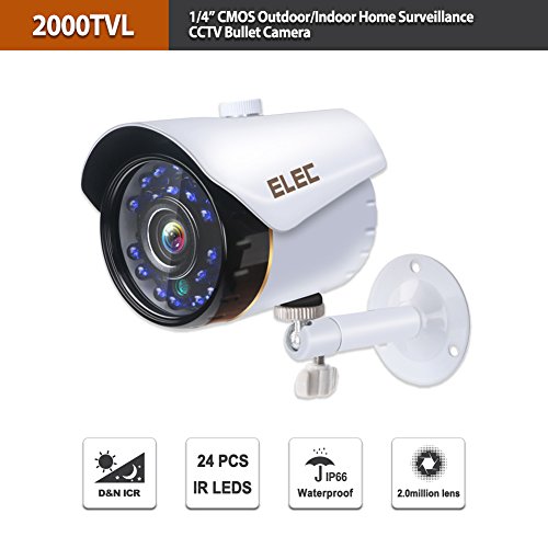 -. Title : ELEC Security Camera,1/4” CMOS 720P HD 2000TVL Outdoor/Indoor Home Surveillance CCTV Bullet Camera with IR Cut-80ft IR Night Vision,IP66 Waterproof