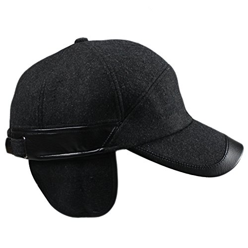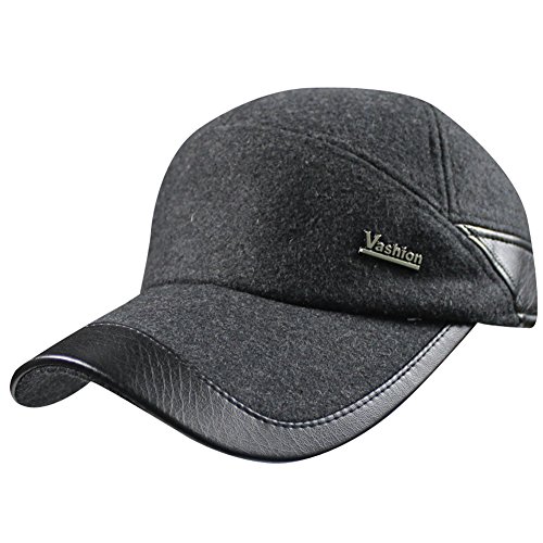 Title : Men's Fall Winter Warm Woolen Peaked Baseball Cap Hat With Earmuffs Ear Flap (Gray)