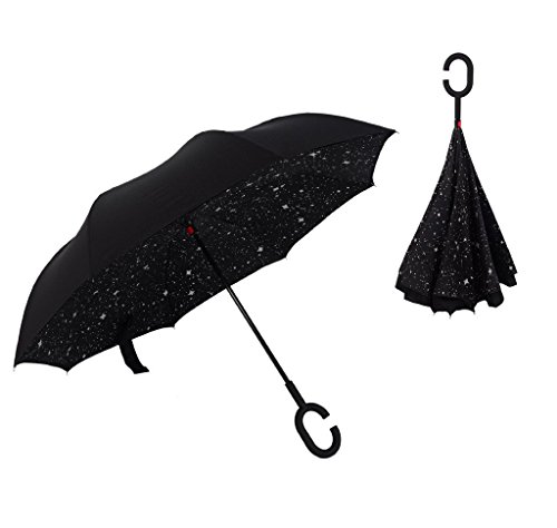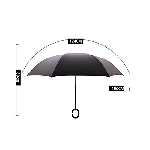 -. Binding : Misc. -. Brand : Tian bo -. Feature : 1. Unique design you can open this inverted umbrella as you open the door and not get wet, And when you close the reverse umbrella, getting back in the car, the water stays inside of the umbrella and doesn't get the car floor wet / 2. The double layer inverted umbrella made of: pongee cloth, durable black electric ribs and double layer ribs make the cars umbrella more sturdy, enhance its windproof effect / 3. The convenient button design make the inside out umbrella easy the operate / 4. Many color to choose, cars reverse umbrella it's a necessary tool for your car, also a creative gift for your parents, friends, wife / 5. Size: 23in * 8 panels; Color as shown -. IsAutographed : 0 -. IsMemorabilia : 0 -. ProductGroup : Sports -. ProductTypeName : SPORTING_GOODS -. Title : Double Layer Inverted Umbrella, silkclo Windproof Protection Cars Reverse Umbrella and Self Standing with C-shaped Handle Travel Umbrella with Carrying Bag