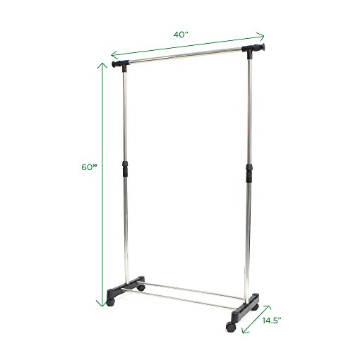 Mind Reader Stainless Steel Adjustable Garment Rack with Wheels, Silver