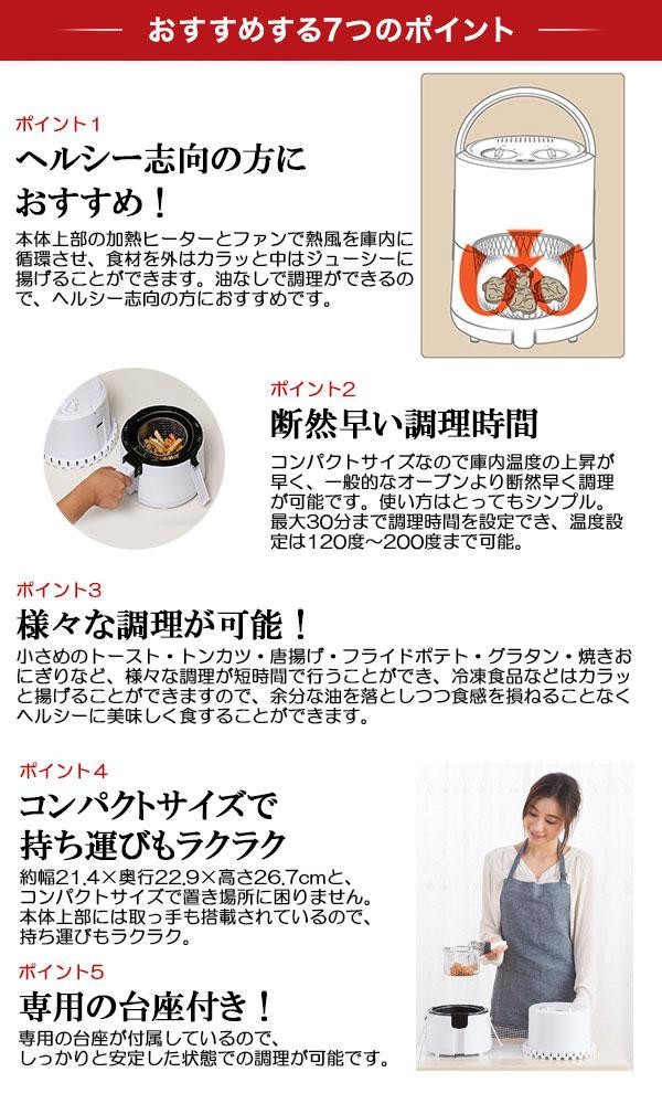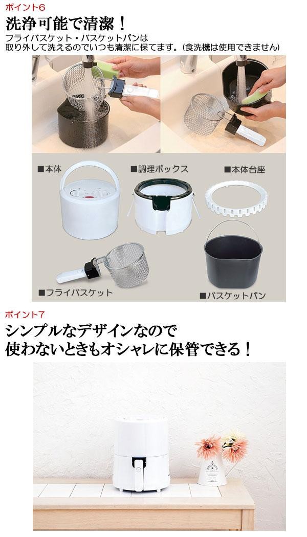 | セット内容 | 本体、フライバスケット、バスケットパン、本体台座、調理ボックス、取扱説明書、保証書(1年間) |