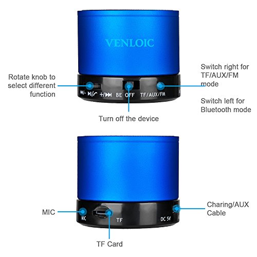 -. Title : VENLOIC Portable Wireless Bluetooth Speaker with Built-in-Mic,Handsfree Call,AUX Line,TF Card,HD Sound and Bass for Iphone Ipad Android Smartphone and More(BLUE)