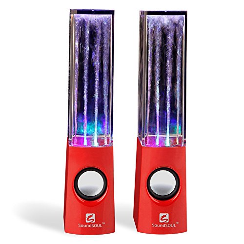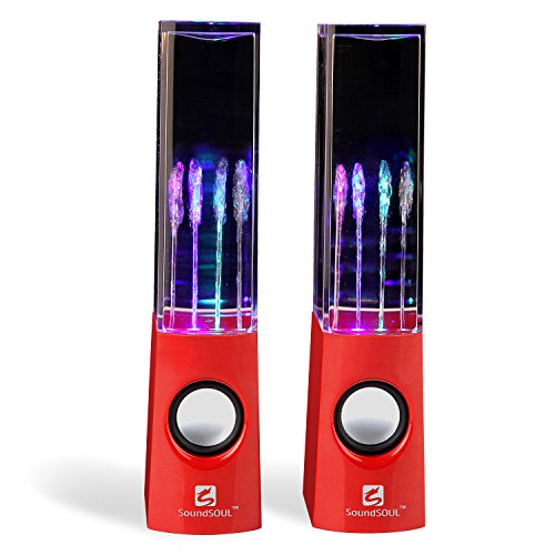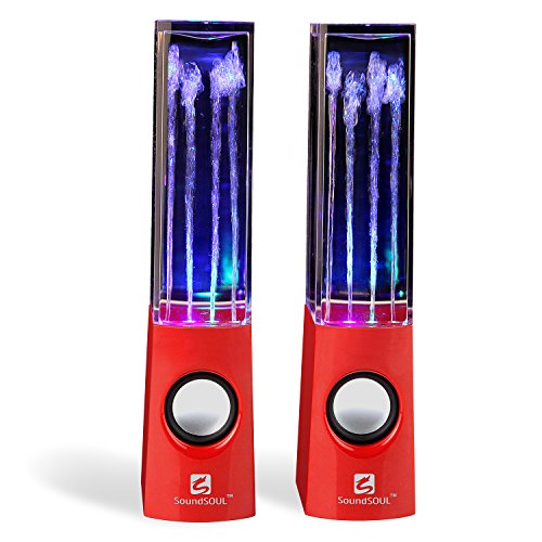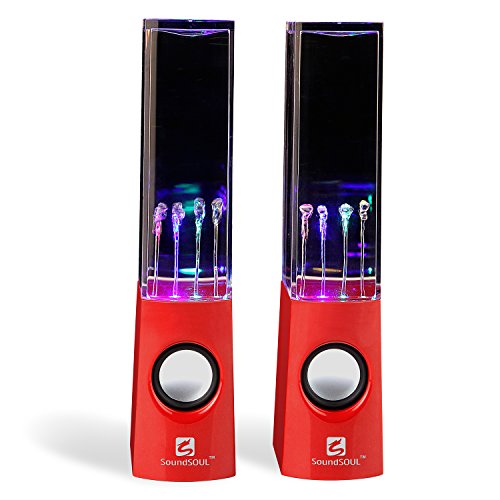 Title : SoundSOUL LED Speakers Water Dancing Speakers Music Water Fountain Speakers (3.5mm Audio Plug, Powerful Dual 3W Speakers, 4 Colored LED Lights) - Red