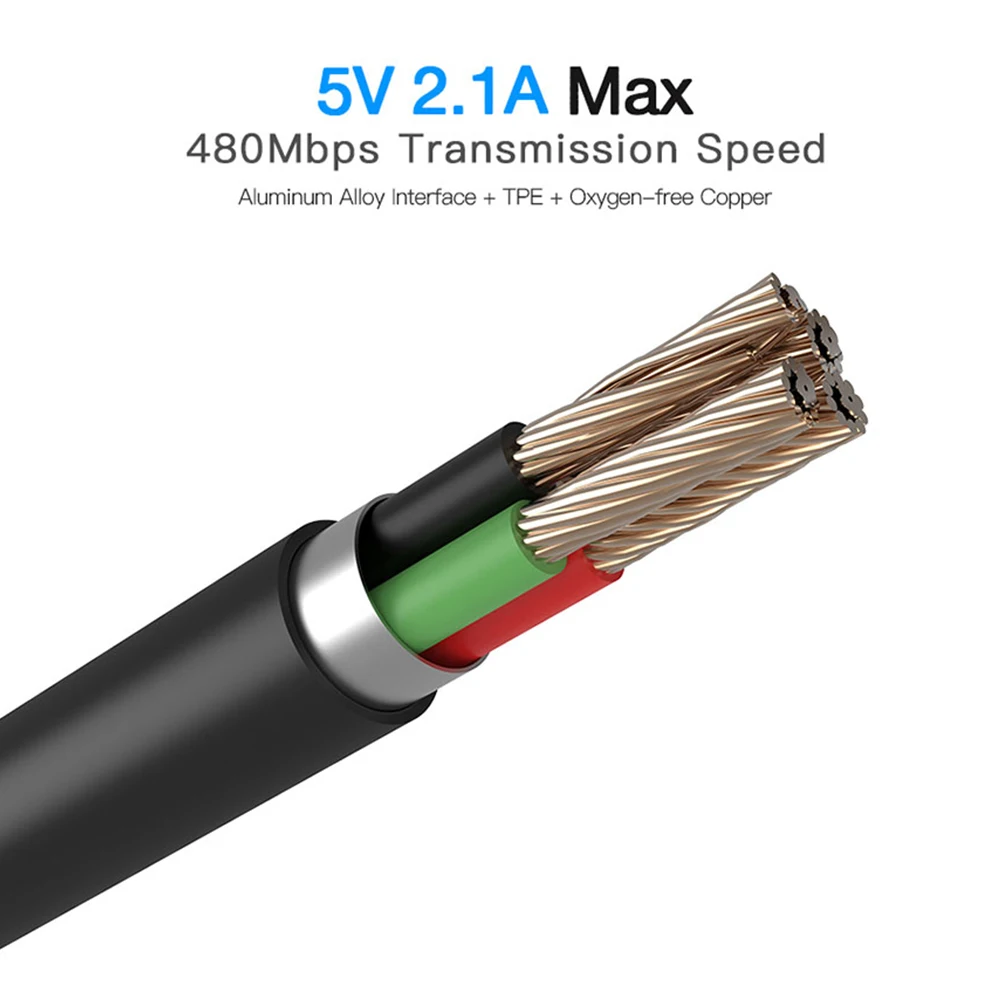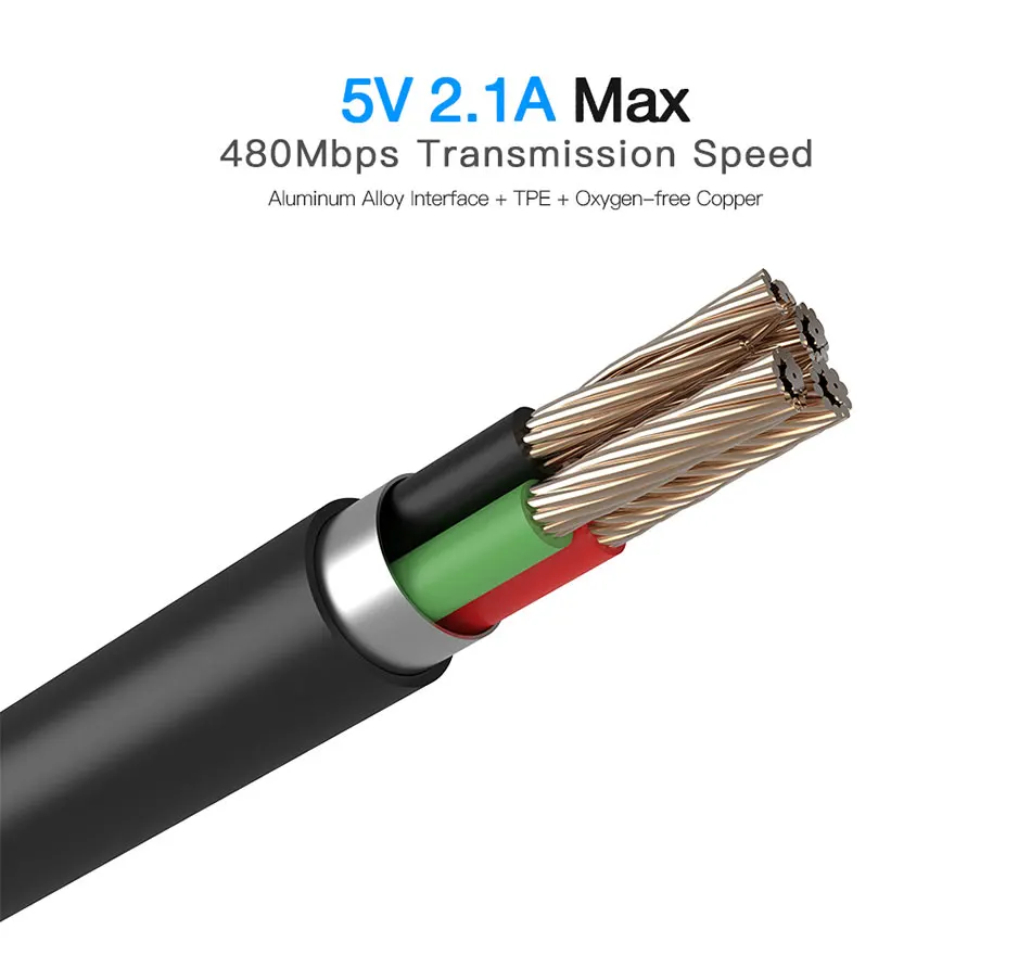 Function:480Mbps Data Transmission + 5V 2.1A Charging Cable