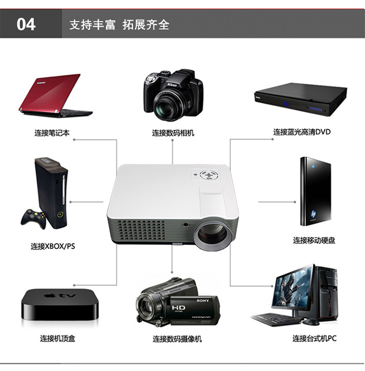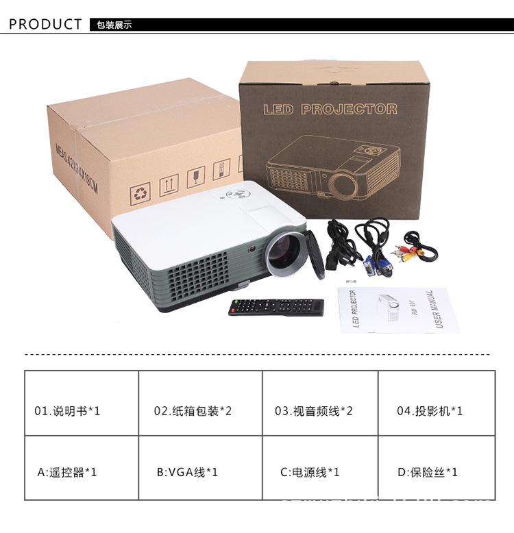 热销801投影仪家用商务LED支持高清1080P微型投影机放映机厂家直销