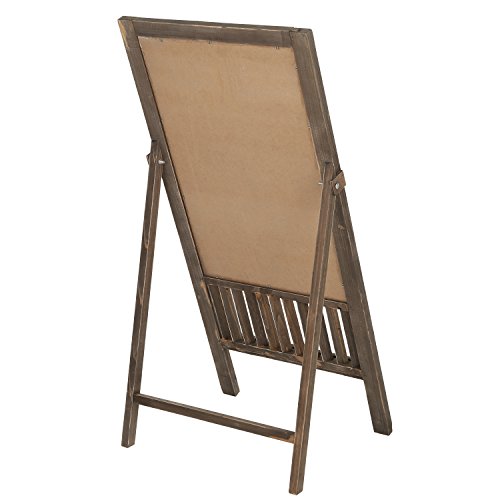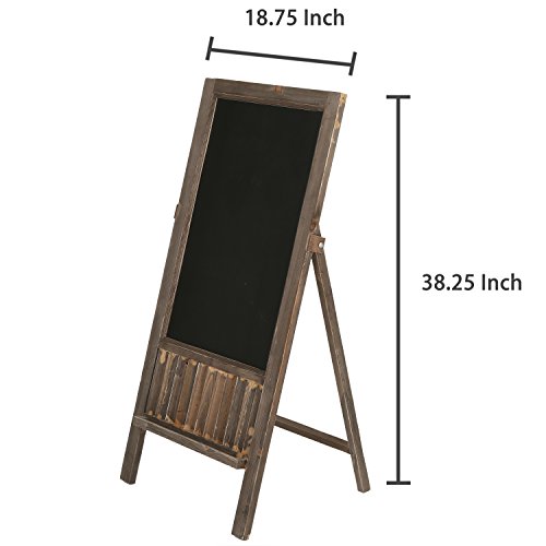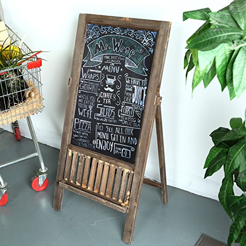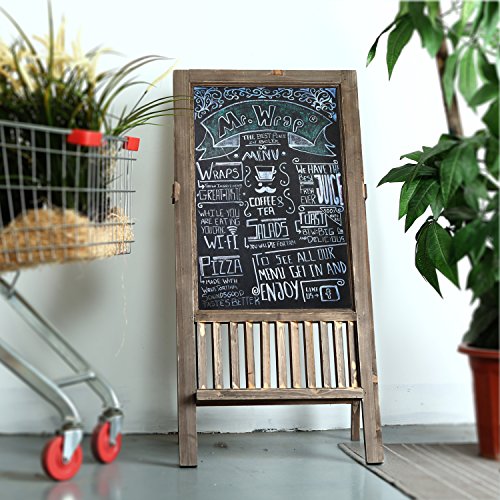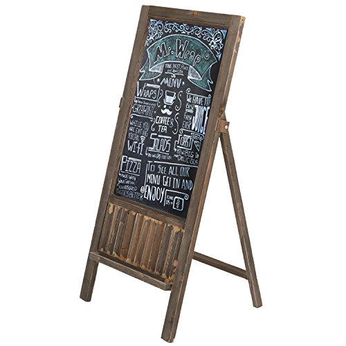 A freestanding framed wood chalkboard sign with a country rustic finish.