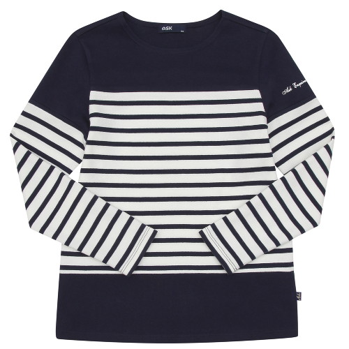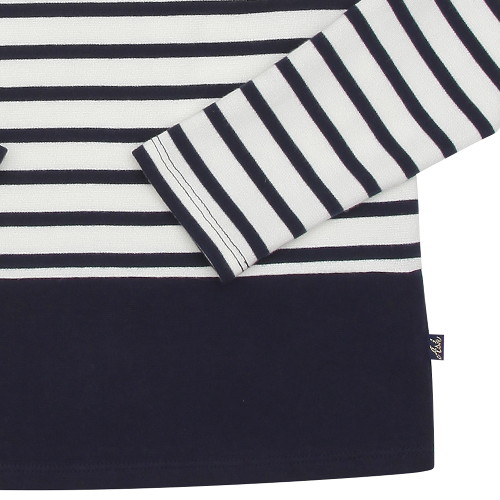 - 보트넥 스트라이프 티셔츠. 분또 소재를 사용하여 두께감이 있으며,